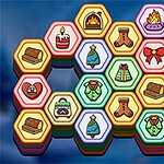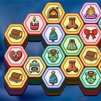 Um quebra-cabeca aconchegante de inverno: limpe o tabuleiro empilhando tres pecas hexagonais iguais